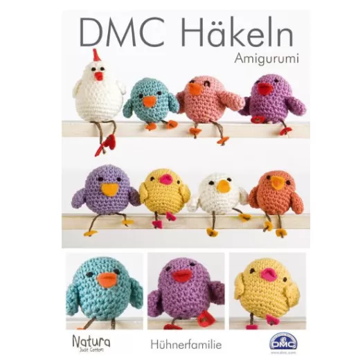 Häkelanleitung von DMC zum Häkeln einer Hühnerfamilie.