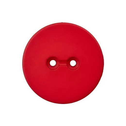 Flacher, einfarbiger 2-Loch-Knopf aus Kunststoff mit optischer Vergrößerung der Knopflöcher.