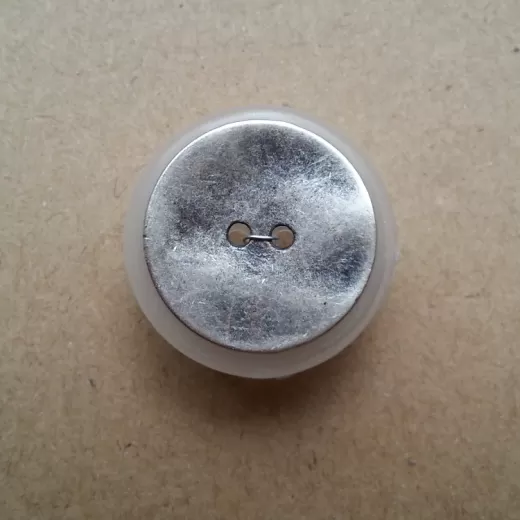 Zweilöchriger, leicht geweller Metallknopf.