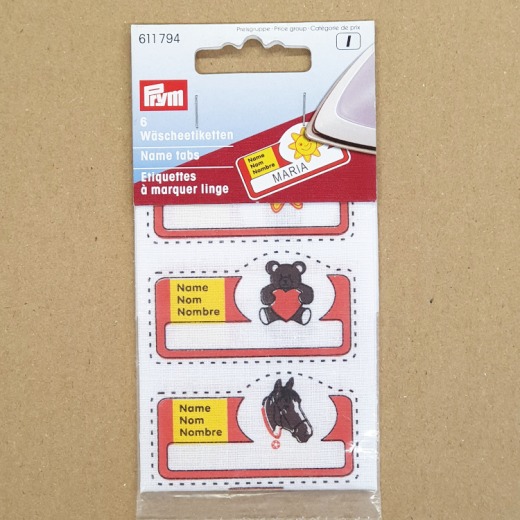 6 Motiv-Wäscheetiketten zum Aufbügeln.